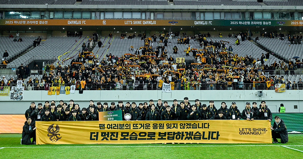 광주FC의 2025년은 기록과 도전이 현실이 된 해였습니다. 유료관중 집계 이후 구단 역대 최다 유료 관중(9,544명 / 24R VS 전북)을 달성하며 광주의 열기를 증명했고, K리그 시도민구단 최초로 아시아 챔피언스리그 8강에 진출하며 새로운 역사를 썼습니다. 코리아컵에서는 구단 최초 준우승이라는 값진 성과를 거뒀고, 안영규는 구단 역대 최다 출장(188경기 / 32R VS 대구)을 기록하며 광주의 시간을 함께해왔음을 보여줬습니다. 새로 맞이하는 2026년, 더 나은 모습으로 보답하겠습니다.